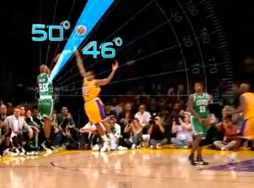 圖像來源 : youtube by Espn Science 熱火隊射手Ray Allen示範最佳的出手角度